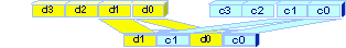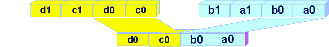 A final Unpack instruction on the two intermediary results gives the first set of results (Figure 8). Note that it is unpacking double words into quadwords. An unpack high of these same two intermediary results gives the second set of results. A similar sequence of Unpack operations is necessary to get the last two results.