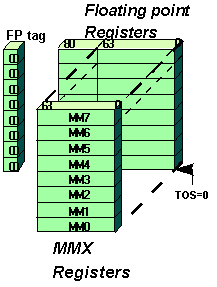 Figure 1. Mapping of MMX™ Registers to the Floating Point Registers In summary: MMX instructions use eight new 64-bit general purpose registers which are mapped on the floating point registers. Each can be directly addressed within the assembly by designating the register names MM0 - MM7 in MMX instructions. (Figure 1)