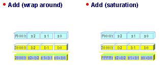 4. 2. Enhanced Instruction Set MMX technology defines a rich set of instructions that perform parallel operations on multiple data elements packed into 64 bits (8x8-bit, 4x16-bit, or 2x32-bit fixed-point data elements). Overall, 57 new MMX instructions are added to the Intel Architecture. MMX instructions operate on different data types, and support operations on both signed and unsigned operands. MMX arithmetic instructions come in two different flavors: wrap around arithmetic and saturating arithmetic. In wrap around arithmetic, when an operation overflows or underflows, the most significant bits are lost. For example, addition of two unsigned 16-bit numbers residing each in a 16-bit register may result in an unsigned 17-bit result, a number too large to be represented in a 16-bit register. The low-order 16 bits of the result appear in the result register, but the 17th bit is truncated. With saturating arithmetic, the result is clamped to the largest possible unsigned number representable in a 16-bit register: FFFFh, if the result cannot be represented in 16 bits (Figure 3) .Saturating arithmetic avoids the need to check for overflow.