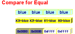 Figure 4. Packed Compare Instruction This resulting mask can be used in a variety of ways. One possibility is to perform a conditional move operation (Figure 5). By performing a logical AND with the mask, elements of vector Y are moved in where the condition is true. By performing a logical AND COMPLEMENT, elements of vector X are moved in where the condition is false. A logical OR between these two intermediary results gives a result where Y has been selected where the condition is true, and where X has been selected where the condition is false. This conditional move is executed without the need for any branch instruction, which makes it very efficient. Branch instructions are to be avoided when exploiting data parallelism since they can be seen are serializers.