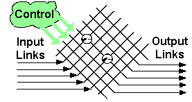 Crosspoint SwitchCrosspoint switches (figure 11) operate by a circuit switching technique. The inputs and outputs are connected to a number of separate parallel data paths. The input paths are at right angles to the output paths to form of a matrix. At each intersection of input and output paths (crosspoint) there is a switch. Any input can be connected to any output simply by turning on the appropriate switch. Only one input may be connected to any one output at a time, but (potentially) a single input could be connected to multiple outputs. For this type of switch to work in ATM networks, the connections need to be very short to allow just a single cell to be transferred from input to output.
