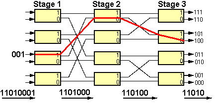 Multistage SwitchesThe simplest form of serial stage-by-stage switching is the "Banyan" switching network (figure 13).