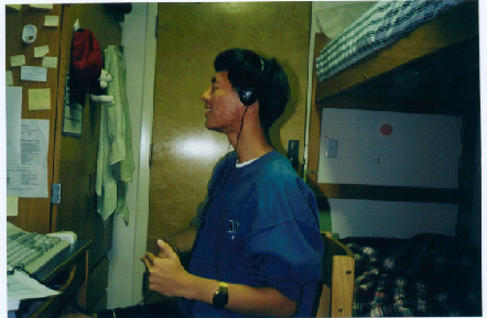 At long last, you get to see the notorious Fang. Look at this f---er. Here we see him getting down to "Gangsta's Paradise." Fang has nappy hair, terrible BO, bad breath, and acne. The Bip Report is, of course, chock full of Fang stories, including the Fang Beatdown saga, which was 100% true. Most Bip Reports from last semester included a Fang story. When I put them up on this web page, I realized how much crap I wrote about him. Anyway, I might get another picture of Fang later on from Scott. For now, you only have to see this one. Isn't he an ugly piece of crap?