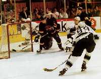 don't tell! I'm a Christian. What else......I love baseball, basketball, American football, and ice hockey, as long as Wayne Gretzky was playing, he's just THE MAN! He was just inducted into the Hall of Fame.... retiring number 99 in 1999. And rightfully so. I probably respect him more than any professional athlete, unless maybe it's Greg Maddux. This is a picture of him scoring his record breaking 802nd career goal in the NHL.