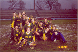 The infamous "Mud Bowl" at Lakelend, my freshmen year. (The bus diver wouldn't let us on until we showered. We ended up clogging up their drains in the locker rooms!); My friends Kristen and Brian pose before our fall concert '99; A whole group before our holiday concert '99.
