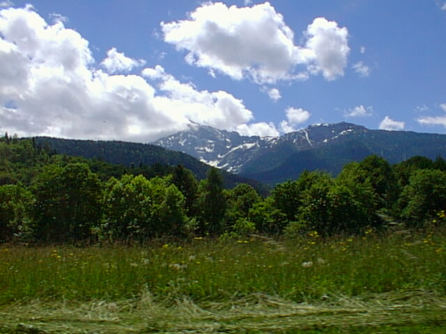 A typical view of the Bayern countryside. Those are the Alps in the background.