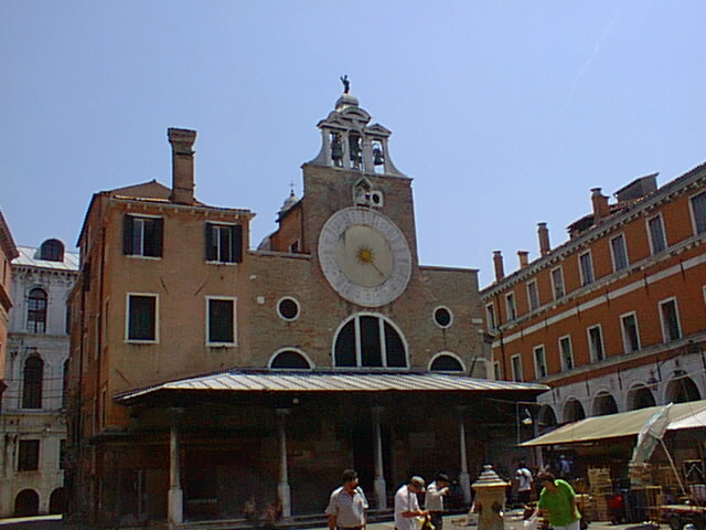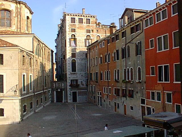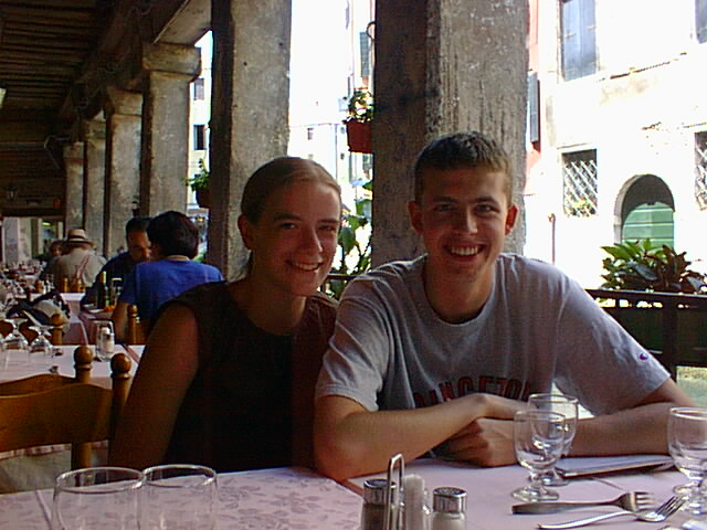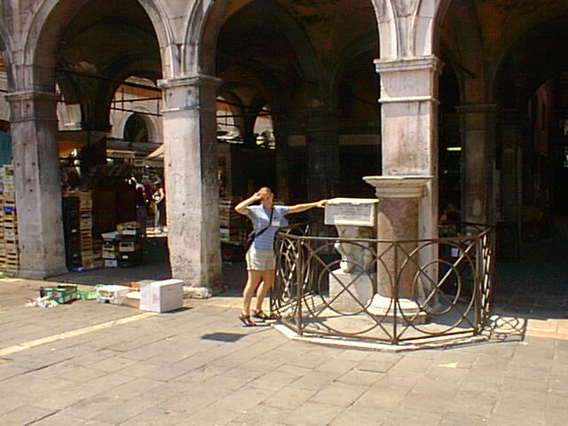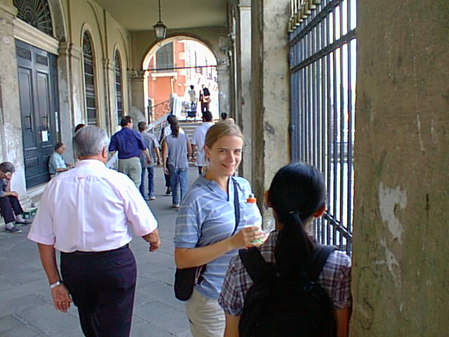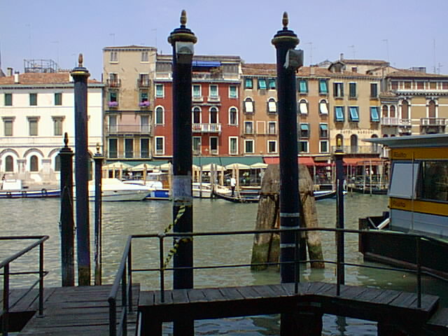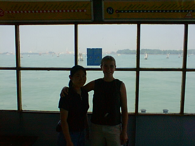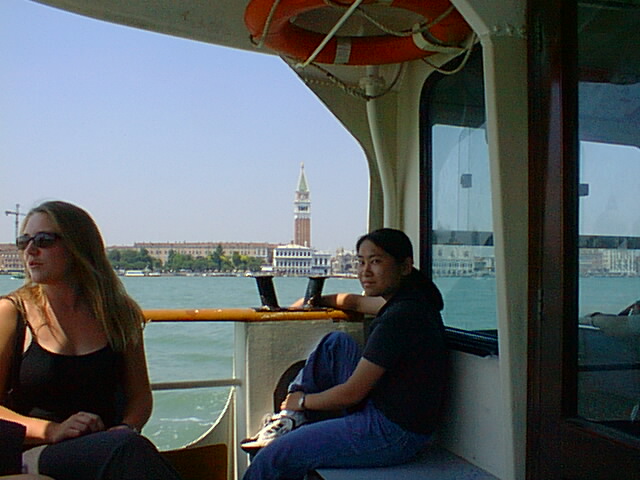 Robin and Satoko at the waiting platform for the vaporetto (possibly sic), or "water taxi"