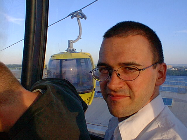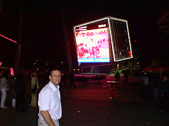 Christian in front of the Deutsch Telekom TV Kube, er, I mean Cube.