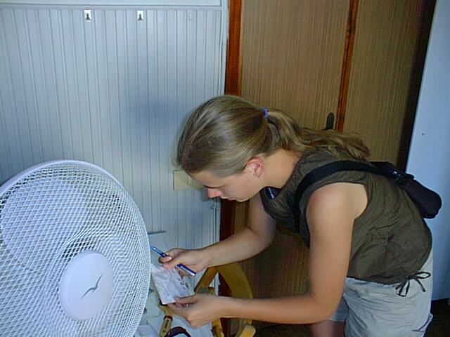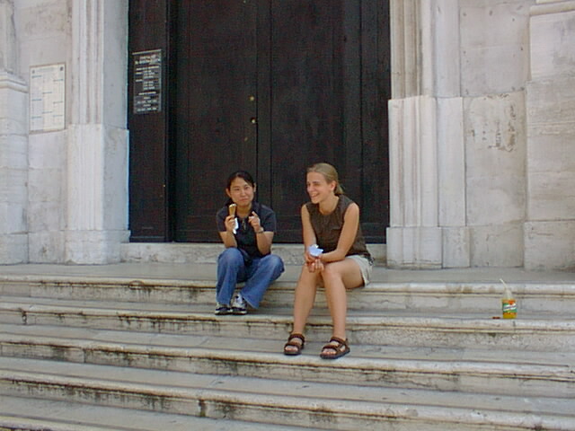 Robin and Satoko "enjoying" a frozen yogurt. Mine was in the trash.
