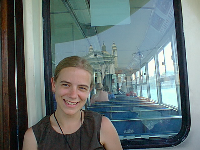 This is a strange picture from the water taxi. You can see a church in a reflection on the window (Robin too)