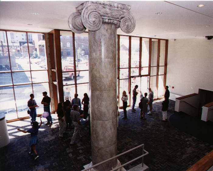 "The back lobby of Capital University's new Law School building in Downtown Columbus."