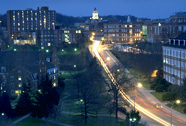 "Above is a photograph of Richland Avenue on West Green of the Ohio University campus."