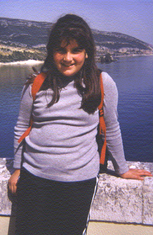 O meu nome é Soraia e gosto muito de brincar… principalmente com os rapazes porque as raparigas são muito "betinhas". Eu sou uma Maria-rapaz e sou um pouco teimosa. Não sou cínica, sou muito sensível e adoro animais. Não tenho amores primários, mas sim um secundário… Gosto muito de ver televisão. Não gosto muito de estudar mas gosto muito da escola. Tenho um sonho desde pequenina: quero ser veterinária ou bióloga. Durante as aulas converso um pouco com o meu colega do lado que, neste caso, é o Valter A minha mãe chama-se Maria Alice e o meu pai chama-se Jorge.