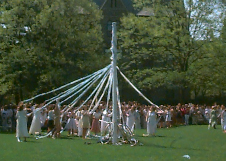 Rhoads Hall, a dorm on campus. This view is from the back. Where the person is sitting is known as "Rhoads Beach." This dorm is also where i will be living next year! |