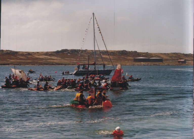 Their own RAFT and then racing it from one end of the harbour to the other…
