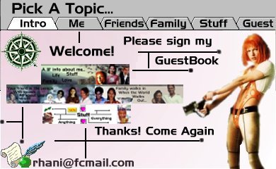 A little about me Some Pictures Family and Friends Some Stuff LeeLoo Leonardo Di Caprio Please Take the time to Sign my Guestbook. Thanks! |