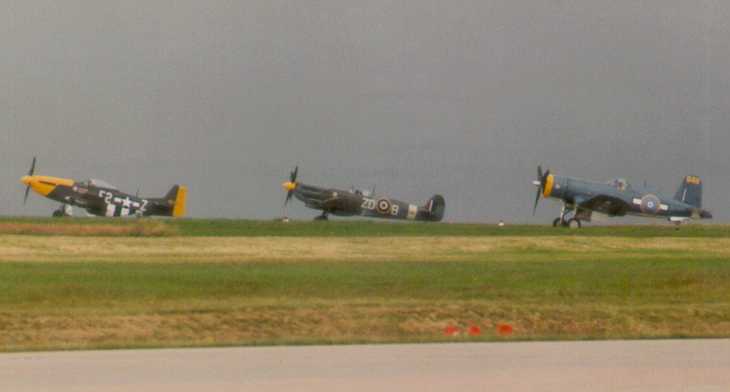 The Breitling Fighters ready to takeoff. The P40 has already gone on the runway.