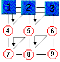 Amb aquestes funcions hem de trobar una manera de resoldre�l. Observem que podem posar les peces 1, 2 i 3 en quadrats diferents, com en el dibuix. Aleshores, amb les funcions (2,5,3) i (4,7,5) enviem les peces de les posicions 3 i 7 a les posicions 2 i 5 respectivament. Obtenim, doncs, el segon dibuix, que acabem de resoldre amb la funció (2,5,3) -1,que correspon a seguir el camí al revés, o el que és el mateix (2,5,3) 2 = (2,5,3) (2,5,3) = (2,3,5).
