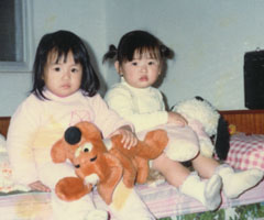 | 我七歲的時候哦....馬桶蓋頭髮的是我...很像日本人吧!....我抱著我妹妹..... (1987-2) | 小學六年級時候, 校外教學時照的....左邊的才是我哦!! 不要認錯囉...(1992-春) |