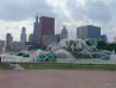 This view is from the ground in front of Buckingham Fountain. Huge bronze sea horses and dragons spray water inward towards the center of the fountain.