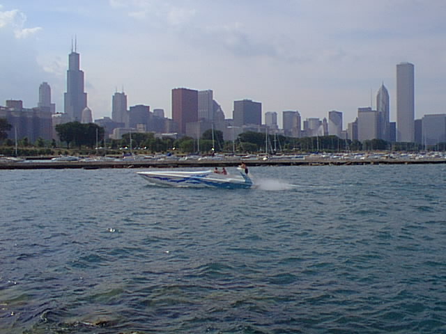 This is a nice shot of the skyline with a large powerboat. Must be nice... hahah