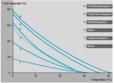 smelttraject; dat wil zeggen dat de hoeveelheid vast vet bij stijgende