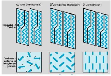 van de vetzuurketens waaruit ze zijn opgebouwd. Als we in het kristalrooster