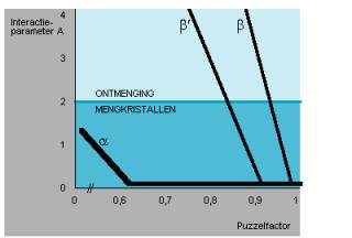 plaatsen, neemt de interactieparameter A erg toe en treedt vermenging op. Voor
