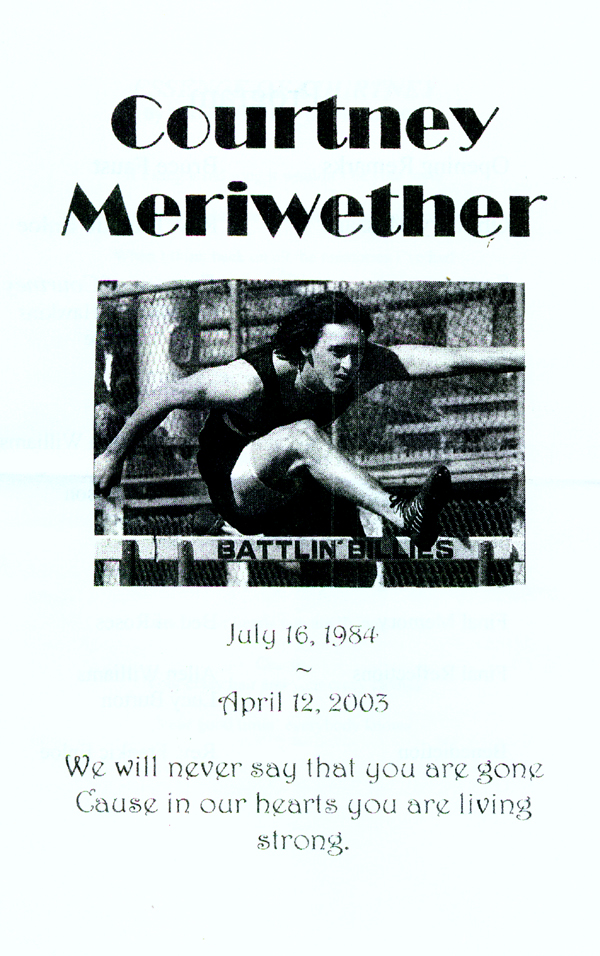 The Story | Courtney Meriwether I | Courtney Meriwether II | Courtney Meriwether III | Courtney Meriwether IV | Courtney Meriwether V | Courtney Meriwether VI | Courtney Meriwether VII | Courtney Meriwether VIII | Courtney Meriwether IX | Courtney Meriwether X | Courtney Meriwether XI | Courtney Meriwether XII | Index