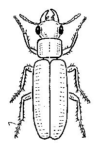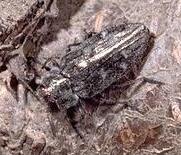 Wood-boring beetles in the family Anobiidae are known as deathwatch beetles. Deathwatch beetles are closely related to the drugstore and cigarette beetles, which are stored-product pests. Adults communicate with each other and probably locate mates by tapping their heads against wood, usually at night. (Deathwatch beetles supposedly acquired their name during medieval European times from people who heard the tapping while sitting up with a sick or dying person during the night.)