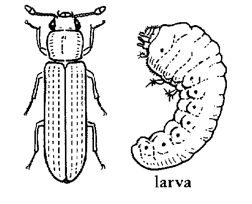 powder post beetles prefer and may be less of a problem in houses with central heating and air conditioning. Larvae of deathwatch beetles fill their galleries with small pellets of frass (smaller than the pellets produced by