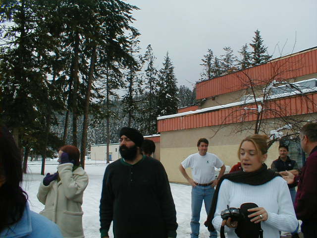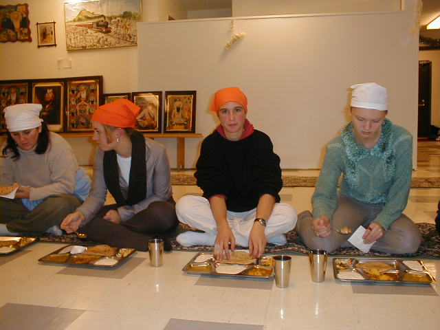 picture of Rachel, Marie, Raph, and Anna eating in temple |