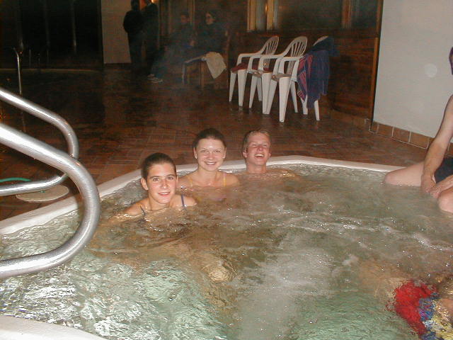 Raphaelle, and a guy with wierd hair (Quentin) in the jacuzzi |