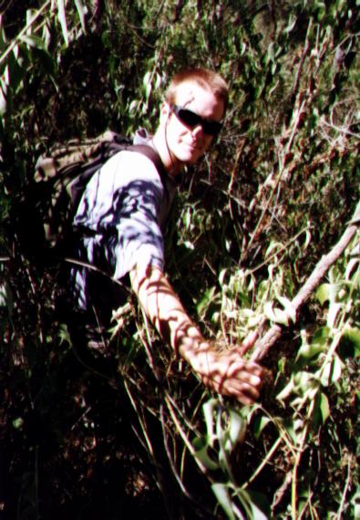 Bidou perdu dans la brousse alors qu'on se fraie un chemin |