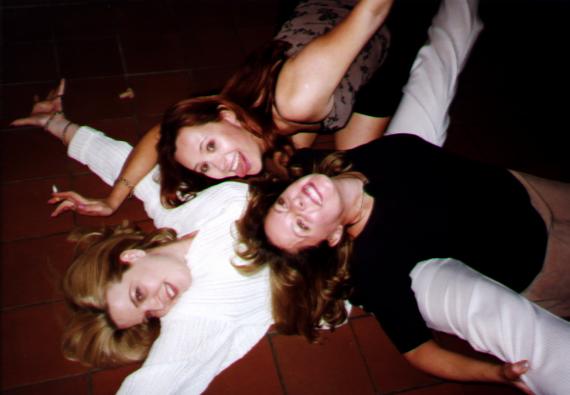 Georgie, Tori, et Emma sur le plancher de la cuisine. Non non y'ont pas bu! |