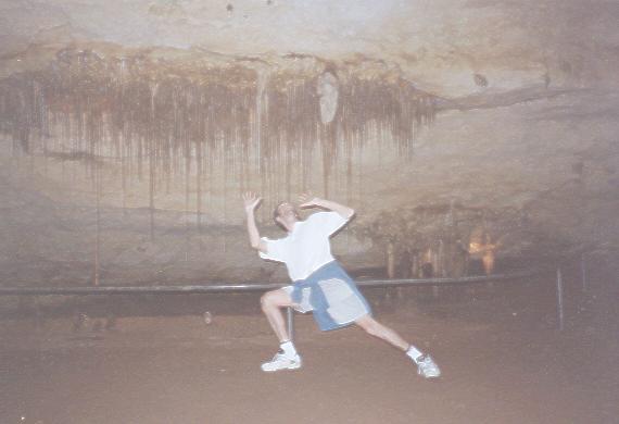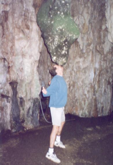 Stalactyte en equilibre sur mon nez; ben voyons, c'est une photo truquee! |