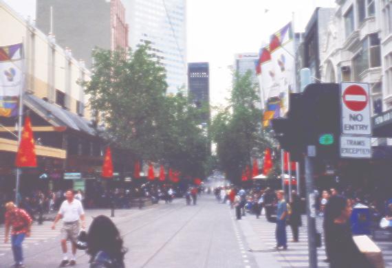 Rue au centre-ville de Melbourne accedee seulement par tramways |
