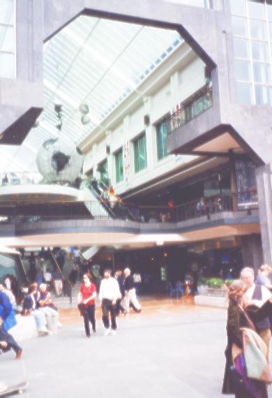 Plaza le long de la riviere Yarra;parfait exemple des centres d'achat, qui sont ouverts. Oiseaux et air climatise' entre et sort |