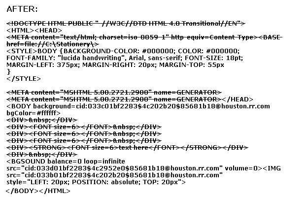 example, we have stripped out the doctype reference (OE will
