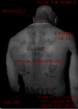 The last tattoo pic is of 6 tattoos that tupac hadon his back part of his body.