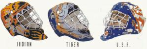 the goal tender helmet is different compare to other player's helmet as it give even greater coverage till the throat ~ in front the is usually cage or visor to protect their eye ~ this full version helmet which also cover the back part while the other version is half helmet where at the back is a strap with a little cover.