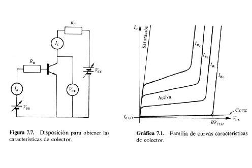 Cuando IB = 0 , para VCE = 0 , IC = 0 , si se va aumentando la tensión VCE vemos que la corriente de colector se estabiliza rápidamente aunque a un valor muy bajo , algunos nA o uA dependiendo del tipo de transistor . Ello es debido a la corriente de fuga del diodo base colector que se encuentra en inversa y se le denomina ICBO . Si se sigue aumentando la tensión VCE se alcanza la región de ruptura por avalancha donde el transistor se destruye irremediablemente, a este valor se le denomina BVCEO , los fabricantes indican un valor BVCEOmax , que no ha de ser sobrepasado en ninguna circunstancia para evitar el posible deterioro del componente .
