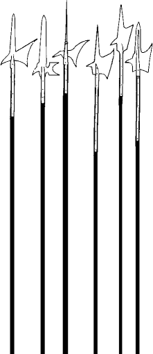 The spear was used in hunting and fishing they were a long wooden stick with a sharp metal point. The spear was a throwing weapon.
