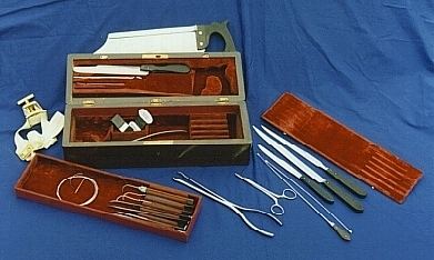 When an ill-fated soldier was wheeled in with any type of gaping injury to his arm or leg, the surgeon would simply say, "cut it off." The procedure that was soon to follow is exactly the reason why soldiers would have rather died in battle than survive in a military hospital. The often screaming victims were laid on tables about breast high. Surrounding the tables were hasty surgeons and assistants stripped to the waist and covered in the blood of many patriotic men. First the assistants cut off the limb using a tourniquet. Then the surgeon sliced through the muscle and tissue using a very sharp knife. Prior to the limb was doused in Chloroform, an anesthetic. Next, they used a hacksaw-like tool to cut through the bone with frightful rapidity. Afterwards the lifeless limb was thrown into a pile. The entire procedure took about fifteen minutes. The surgeons ran like an assembly line. As soon as one patient was finished, the surgeon wiped his bloody knife off on his shirt and began cutting away on the next patient. In the Battle of the Wilderness, Union Surgeons amputated limbs steadily for four days and two nights. After being amputated, patients faced another problem, infection. Hospitals were unsanitary and no one during this time knew anything about infection or bacteria. Many patients died when diseases or bacteria entered the binding wound. Gangrene was one of the most common infectious diseases. It starts when the wound is moist, warm, and unsterile. Many unnecessary deaths occurred because of malnutrition and infection. To die in a hospital after an amputation was an agonizing and unfortunate fate.