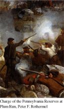 The Union army of the Potomac under General George Meade (shown to the upper right) marched to intercept Lee. |