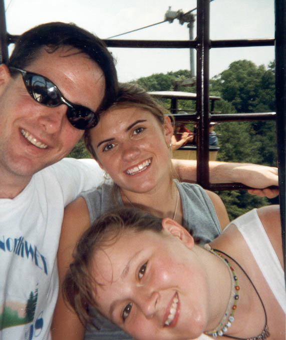 shared in a tram suspended high above the amusement park.