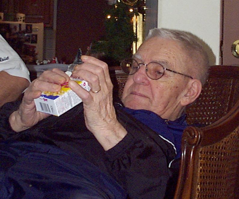 Grampa eating Sugar Pops...there wasn't enough ravioli to go around.