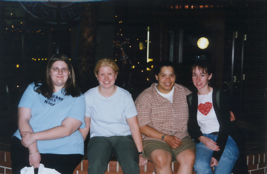 Ris and Christine trying on some crazy glasses at the Village, too cute!