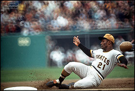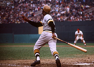Born: August 18, 1934, Carolina, Puerto Rico Died: December 31, 1972, San Juan, Puerto Rico Bats: right Throws: right Elected to Hall of Fame by BBWAA: 1973 393 votes of 424 ballots cast: 92.69% The Pirates' Roberto Clemente played with an intensity that won him universal admiration. Despite an unorthodox batting style, he topped the .300 mark 13 times, won four batting crowns, and amassed 3,000 hits. He was equally brilliant in right field, as he paced outfielders in assists five times with his precise rifle-arm. Clemente was the National League MVP in 1966 and was the star of the 1971 World Series when he batted .414. He died in a plane crash on December 31, 1972, flying relief supplies to Nicaraguan earthquake victims.