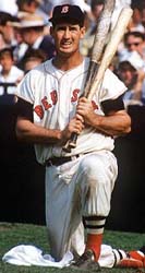 Born: August 30, 1918, San Diego, California Bats: left Throws: right Elected to Hall of Fame by BBWAA: 1966 282 votes of 302 ballots cast: 93.38% The Red Sox' Ted Williams was one of Baseball's greatest hitters and the last player to bat .400. Combining keen vision with quick wrists and a scientific approach to hitting, he set numerous batting records despite missing nearly five full seasons due to military service and two major injuries. His accomplishments include a .406 season in 1941, two Triple Crowns, two MVPs, six American League batting championships, 521 home runs, a lifetime average of .344 and 18 All-Star games.